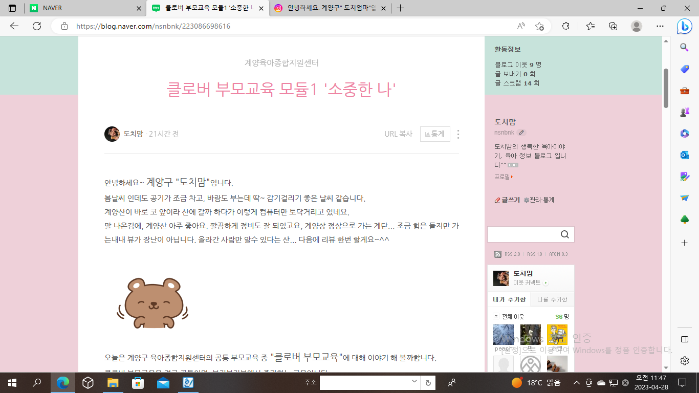 [부모SNS홍보단-계플루언서(4월)] 클로버 부모교육 '소중한 나' 참여 후기