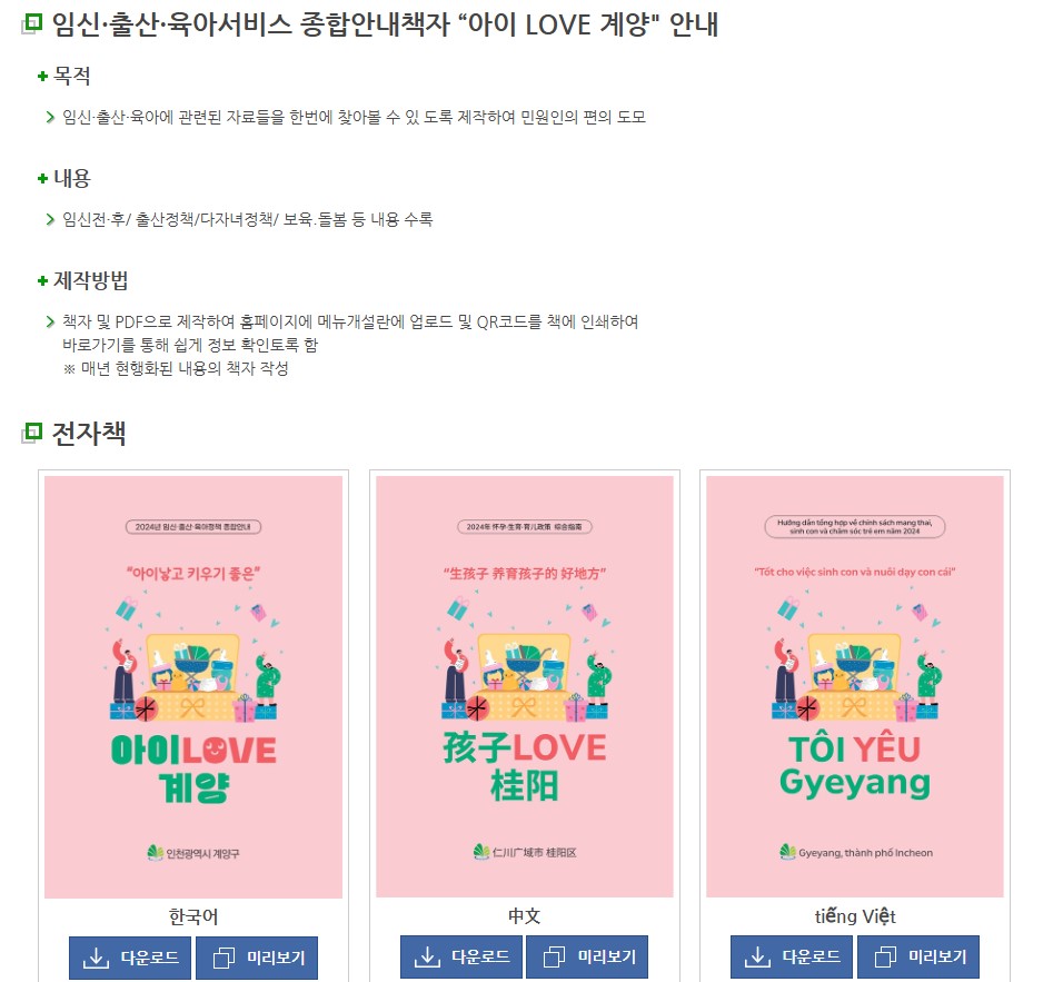 임신·출산·육아서비스 종합안내책자 “아이 LOVE 계양" 안내