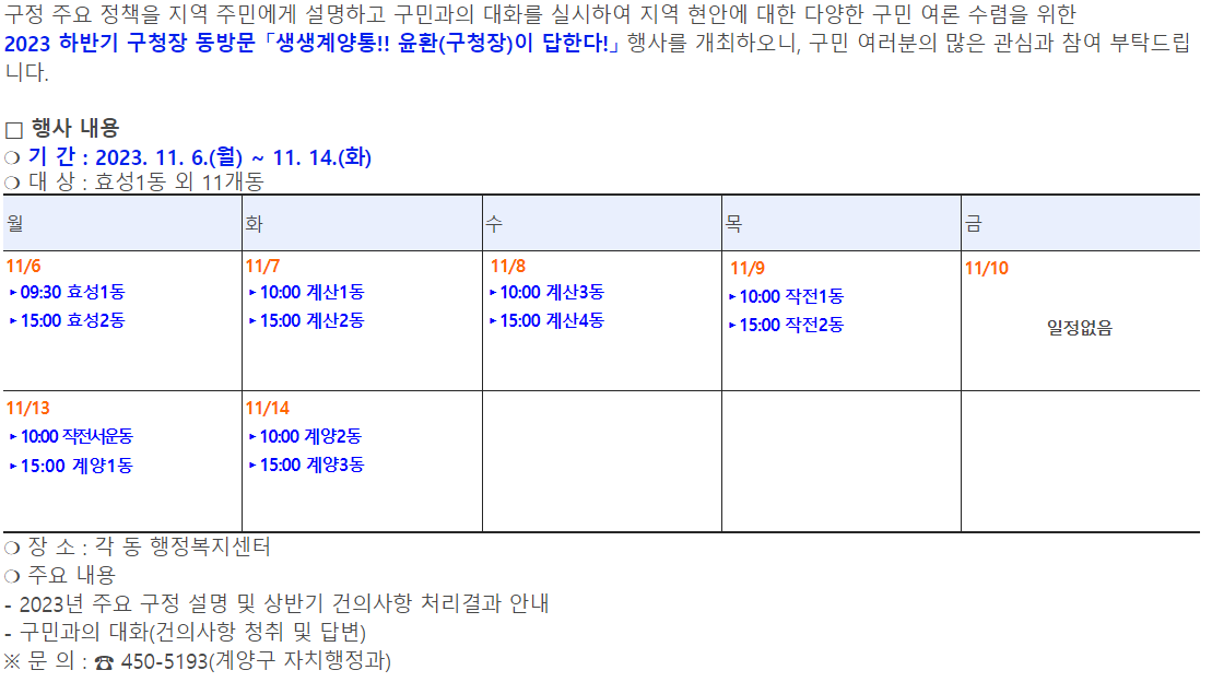 2023 하반기 구청장 동방문 「생생계양통!! 윤환(구청장)이 답한다!」 행사 안내