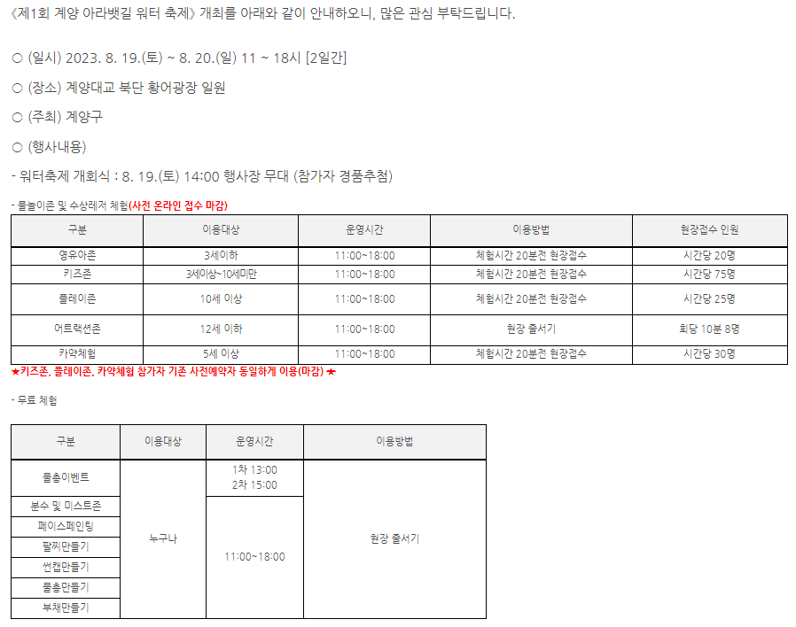 <제1회 계양 아라뱃길 워터축제> 개최 안내