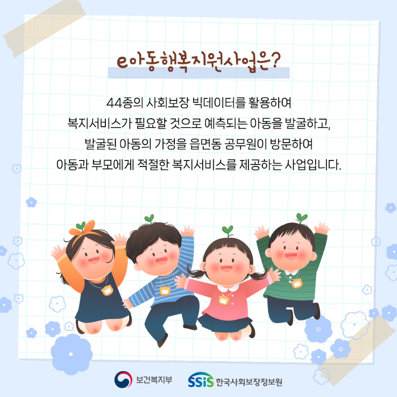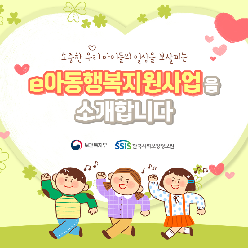 소중한 우리 아이들의 일상을 보살피는 'e아동행복지원사업'을 소개합니다.