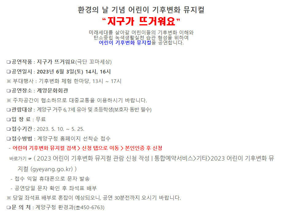 환경의 날 기념 어린이 기후변화 뮤지컬 "지구가 뜨거워요"