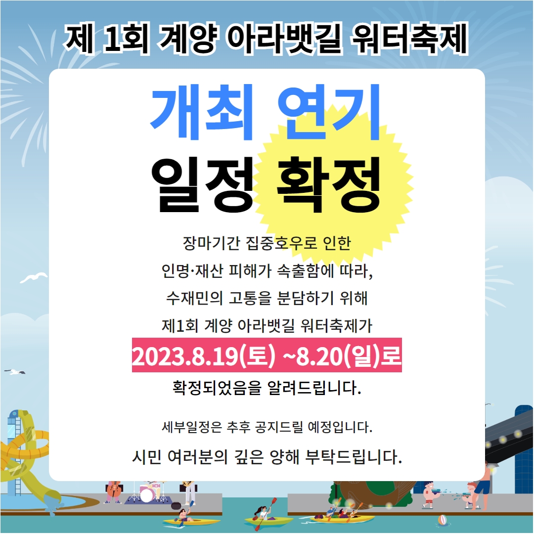 「제1회 계양 아라뱃길 워터축제」일정 변경 안내