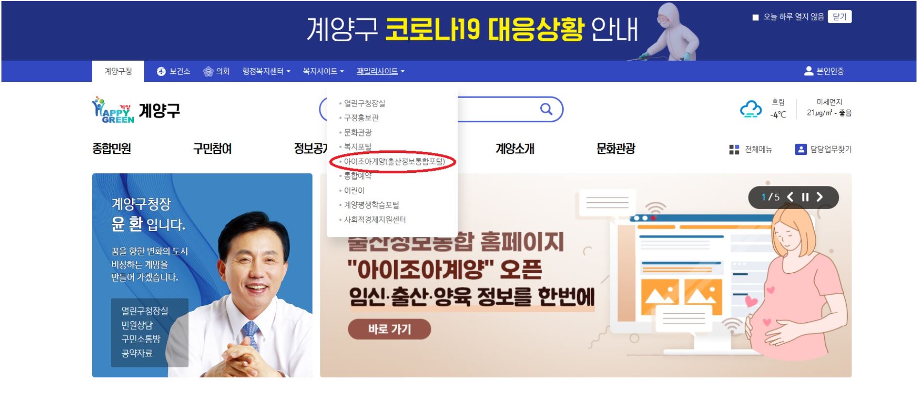 출산정보통합홈페이지 『아이조아계양』개설 알림