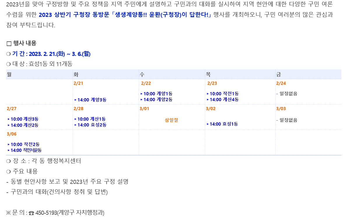 2023 하반기 구청장 동방문 「생생계양통!! 윤환(구청장)이 답한다.」 행사 안내