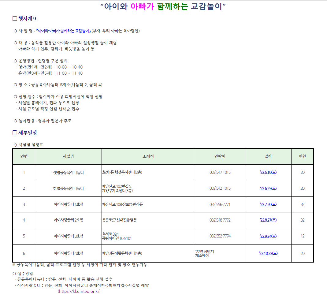아이와 아빠가 함께하는 교감놀이 신청안내
