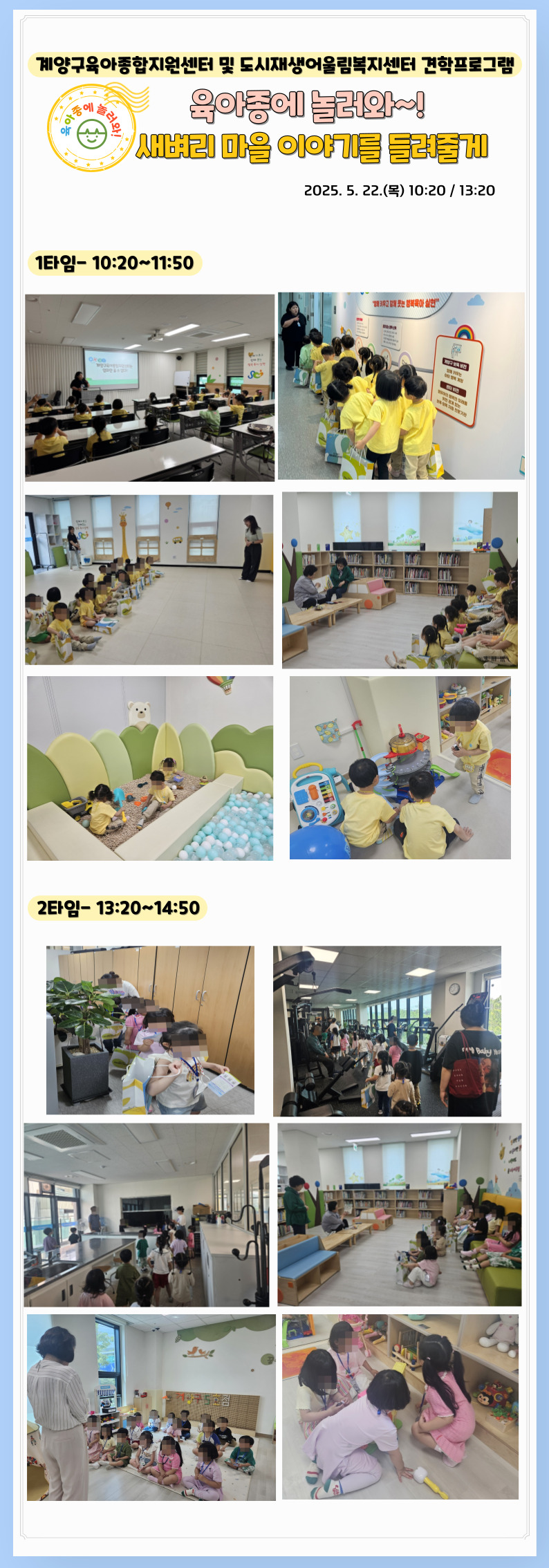 [영유아지원] 센터 견학프로그램-육아종에 놀러와~! 새벼리 마을 이야기를 들려줄게 5월