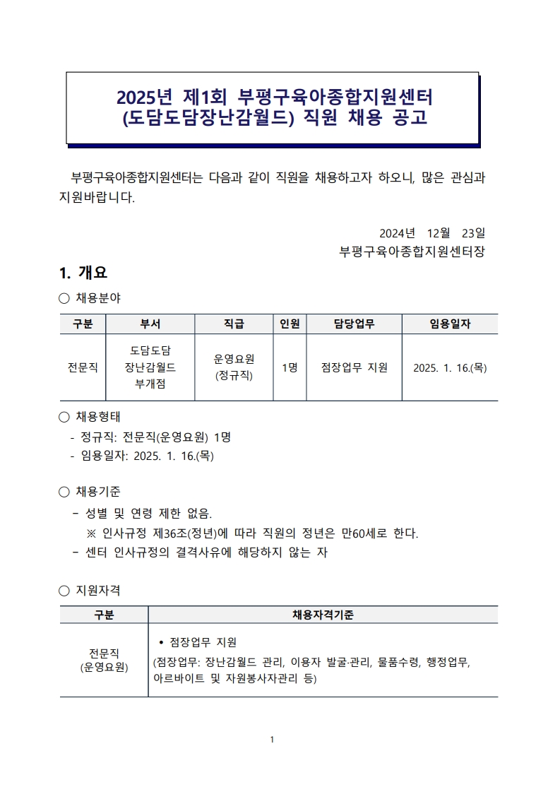 [붙임1.] 2025년 제1회 부평구육아종합지원센터(도담도담장난감월드) 직원 채용 공고 1부..pdf