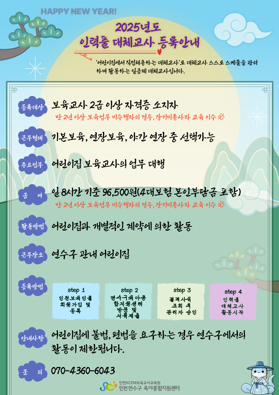 [연수구육아종합지원센터]인력풀 대체교사 등록 안내
