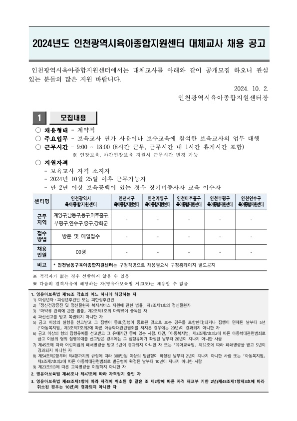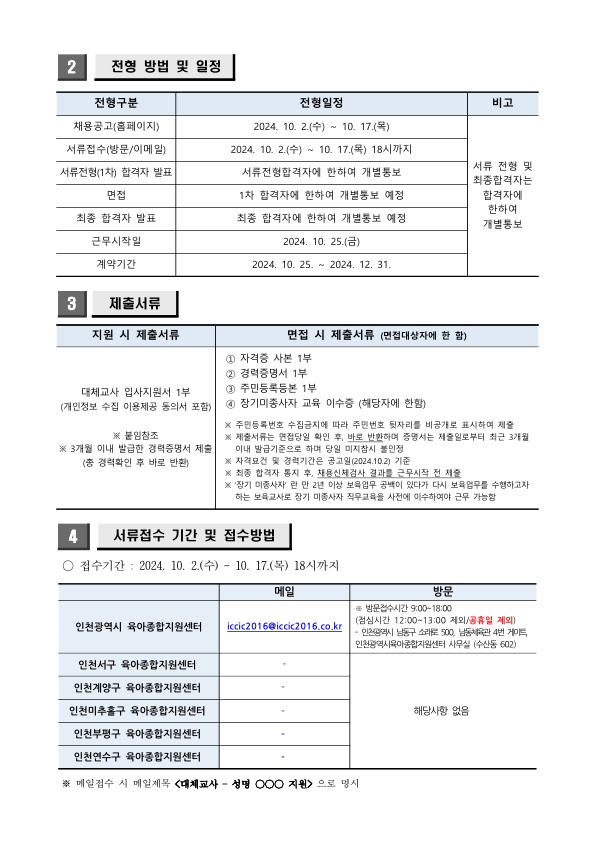 [인천시센터] 2024년도 대체교사 지원사업 대체교사 인력채용