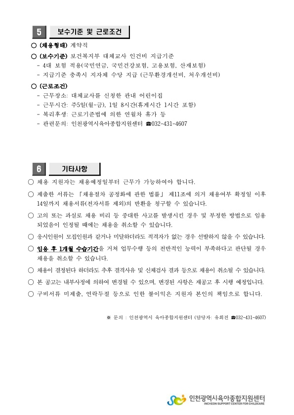붙임2)인천광역시육아종합지원센터 대체교사 지원서 및 개인정보수집·이용동의서.hwp