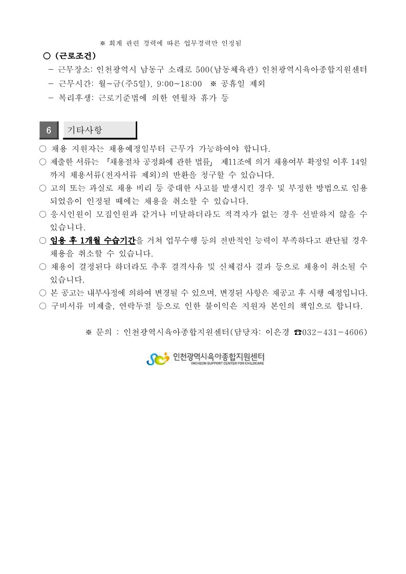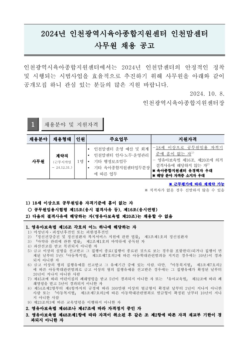 [인천맘센터] 직원채용(사무원)