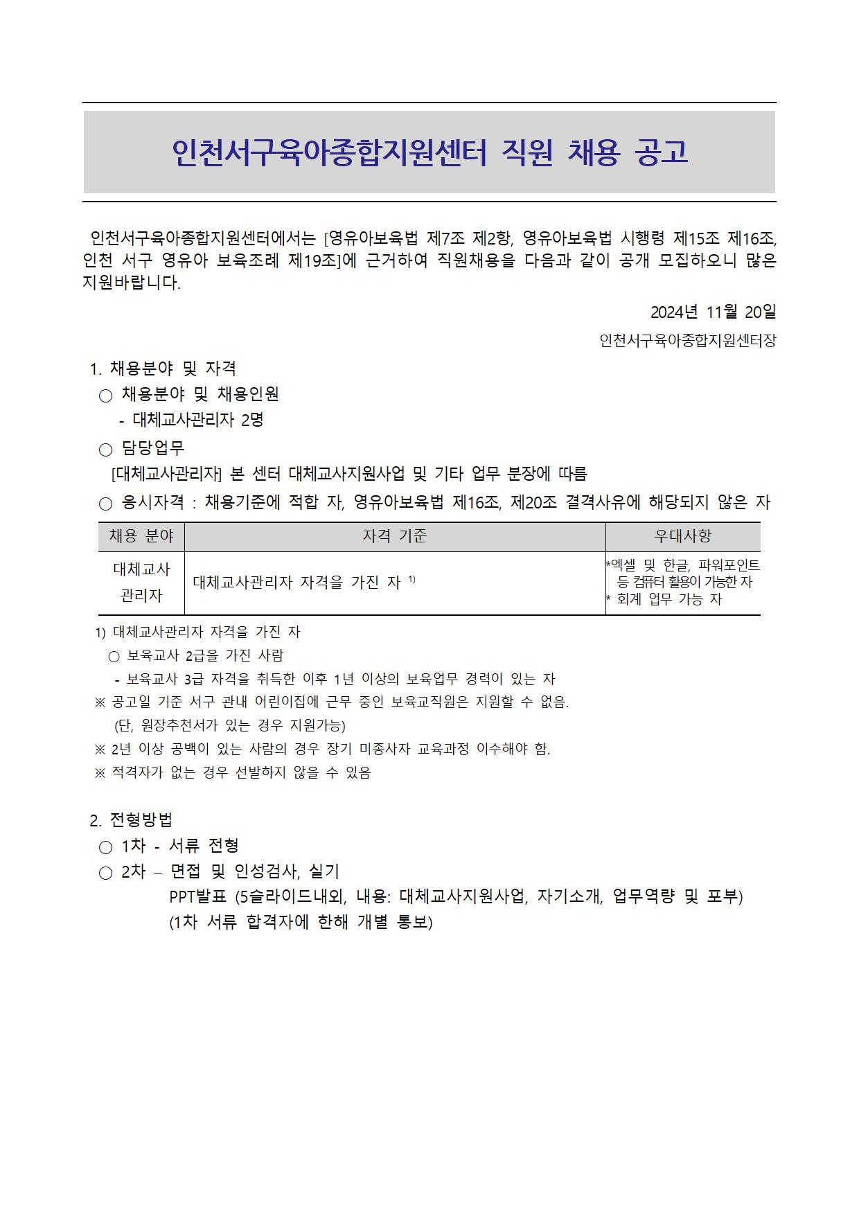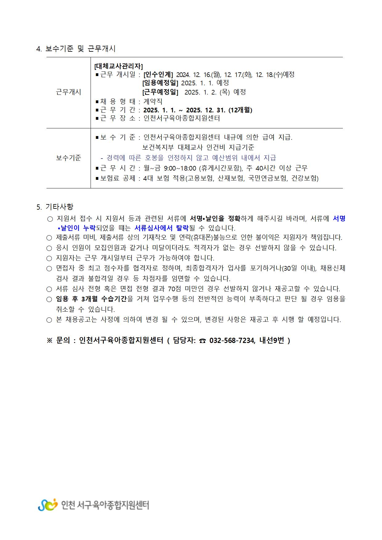 [인천서구육아종합지원센터] 직원 채용 공고.pdf