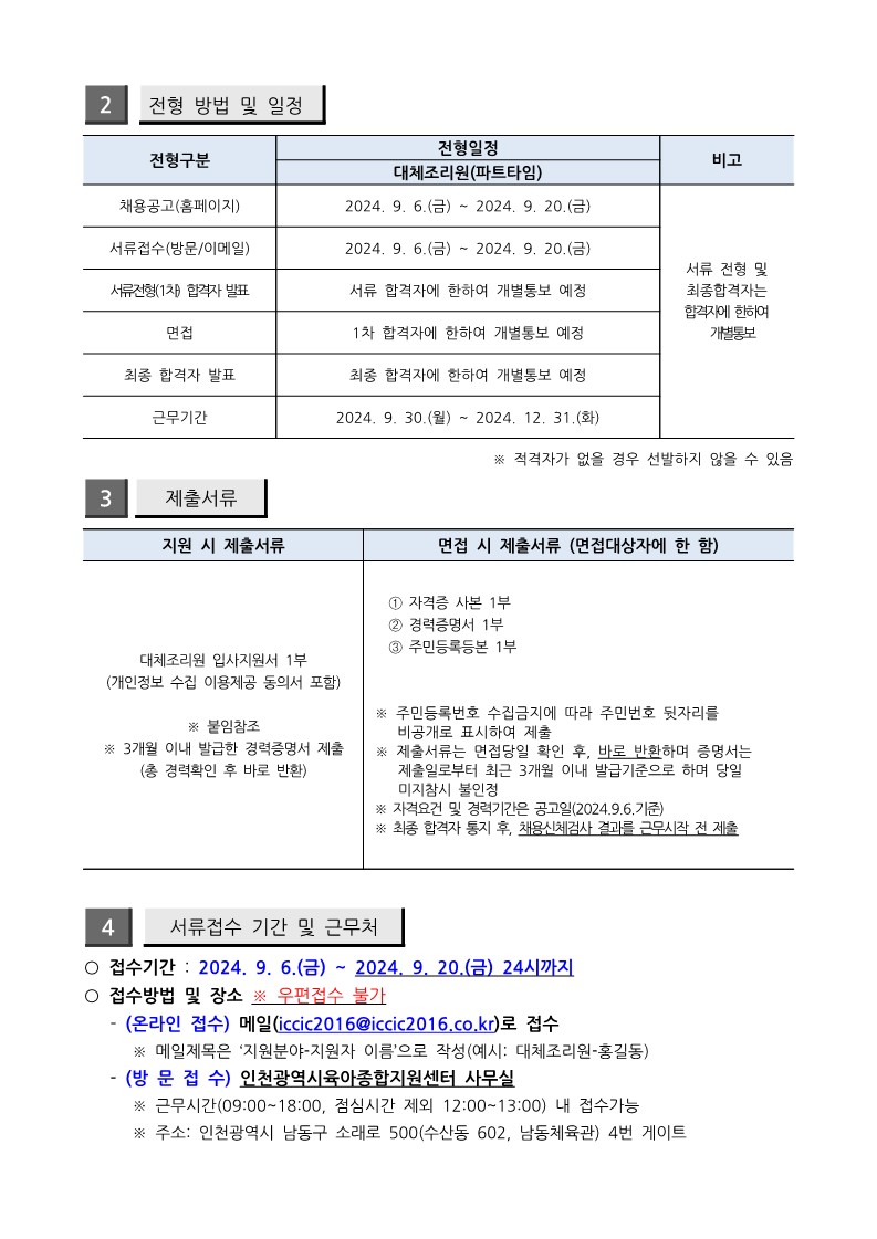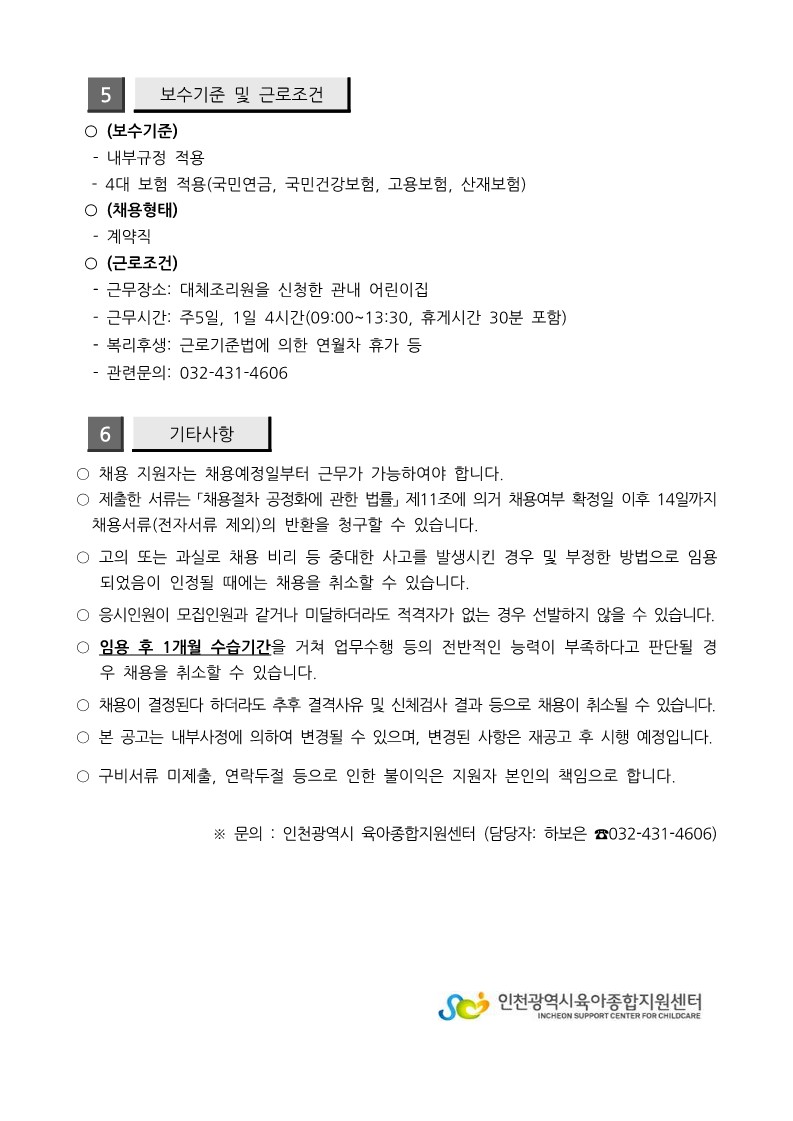 [인천시센터] 대체조리원 채용공고