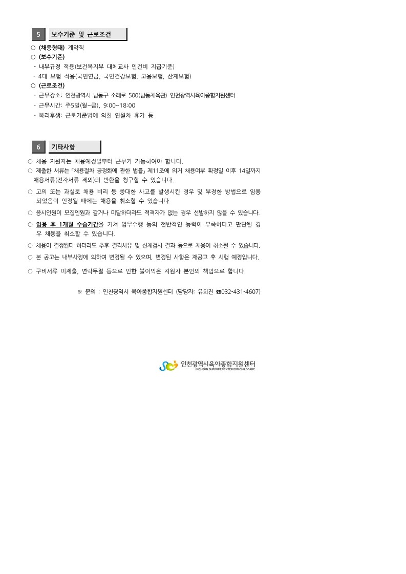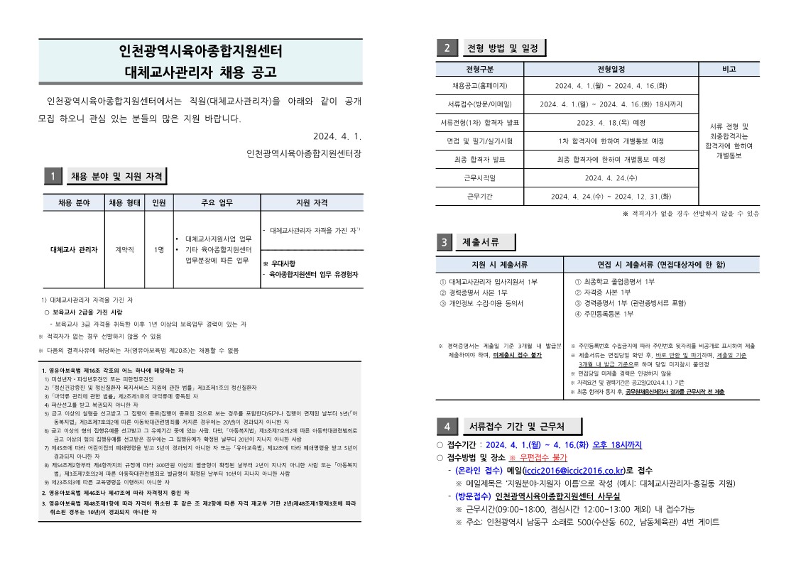 [인천시센터] 대체교사 관리자 채용 공고