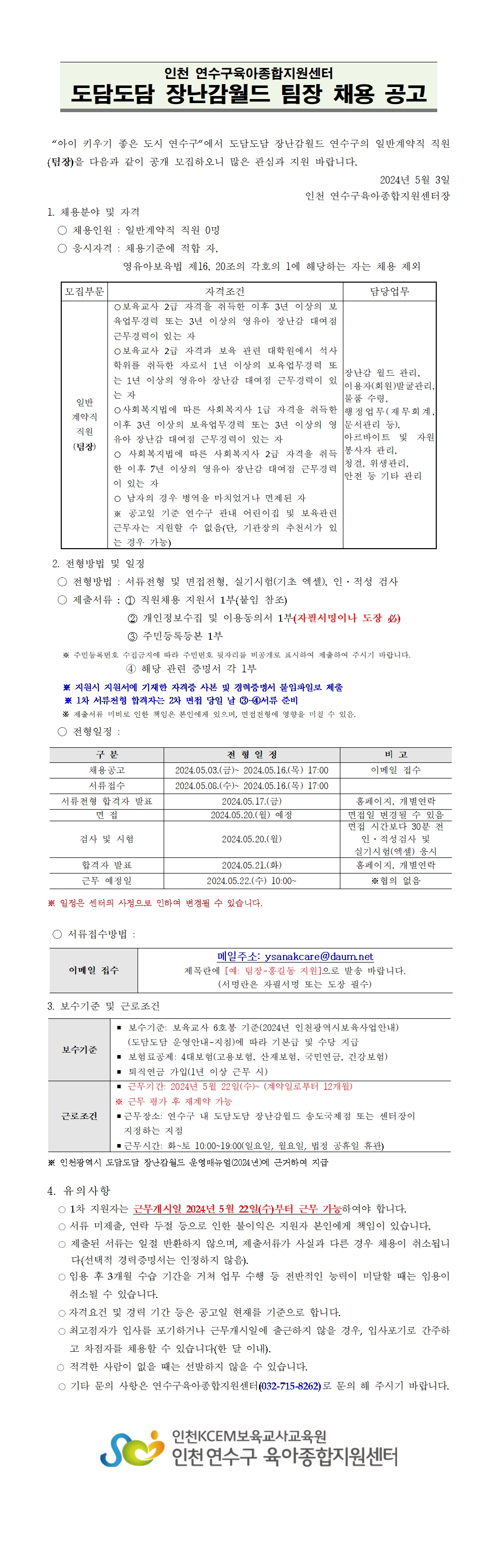 [연수구센터] 도담도담장난감월드 팀장 채용 공고