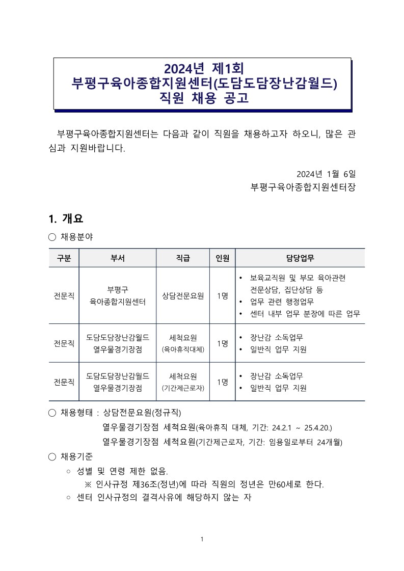 [부평구센터] 직원채용 공고