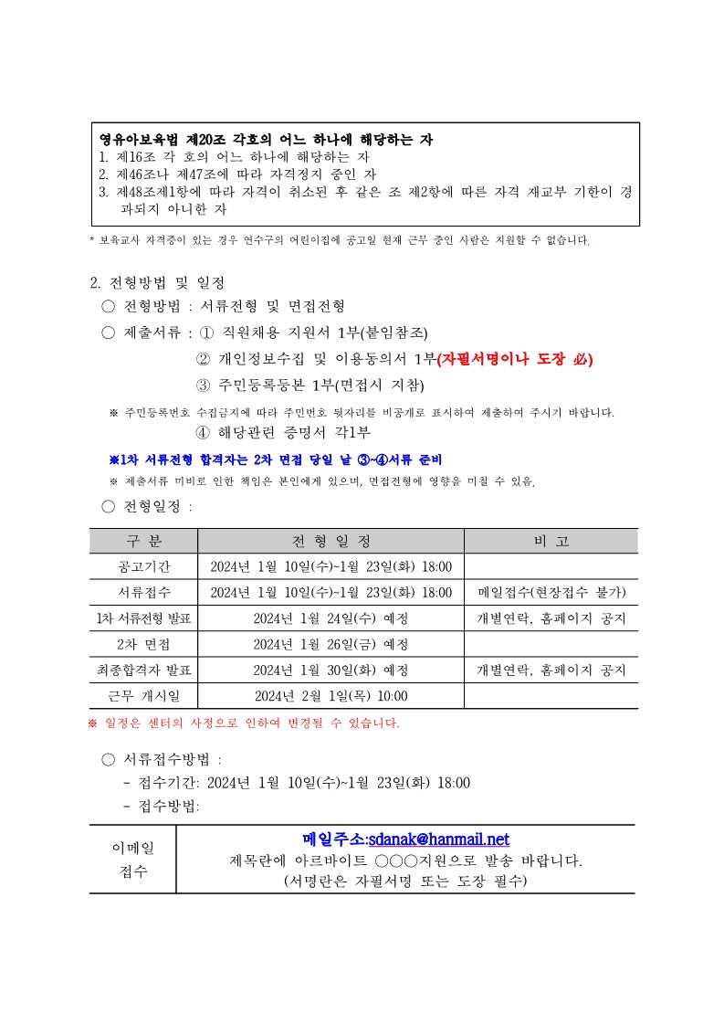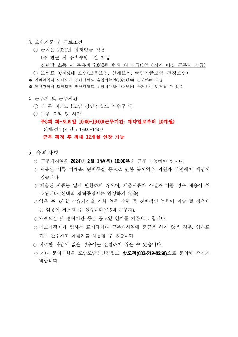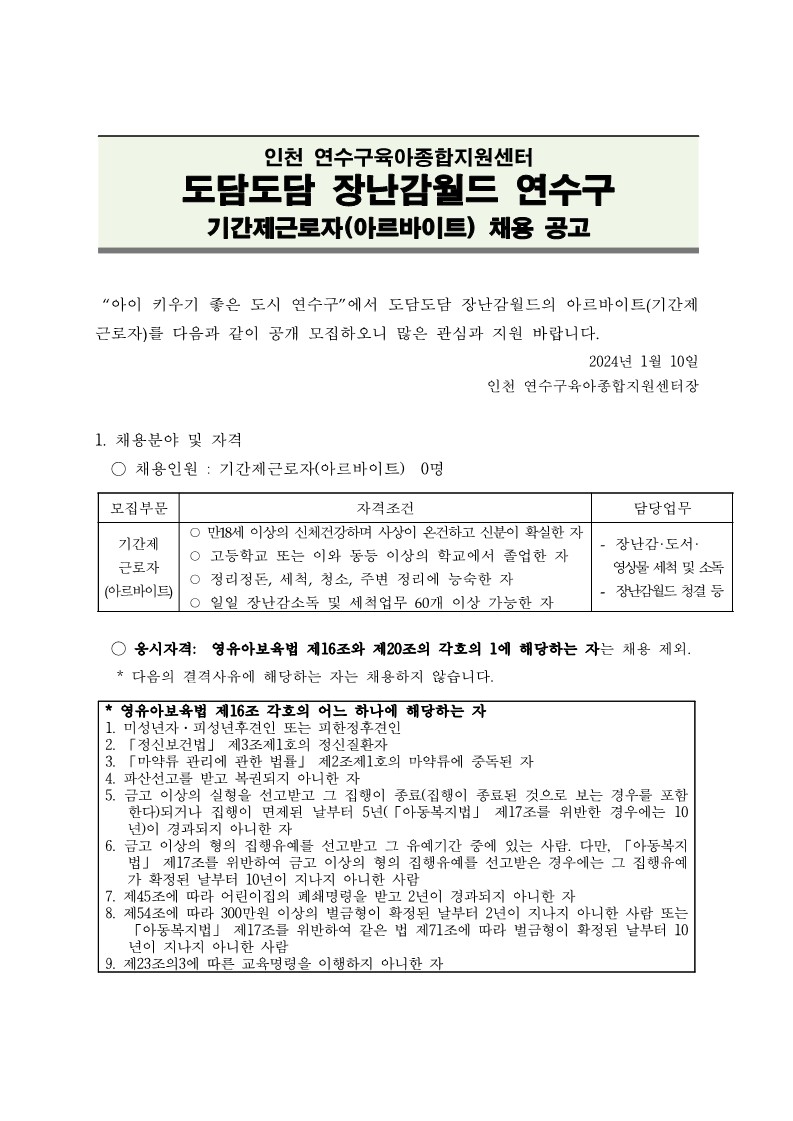 [연수구센터] 도담도담장난감월드 기간제 근로자 채용 공고