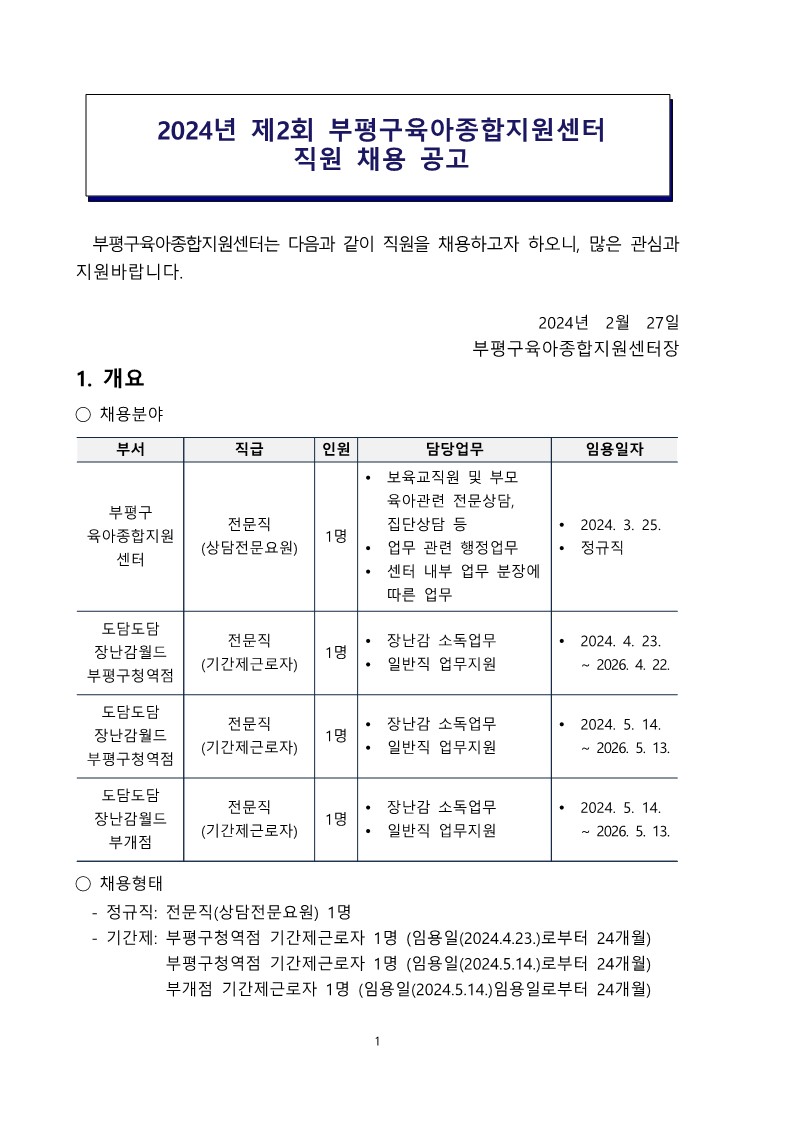[부평구센터] 2024년 제 2회 직원 채용 공고
