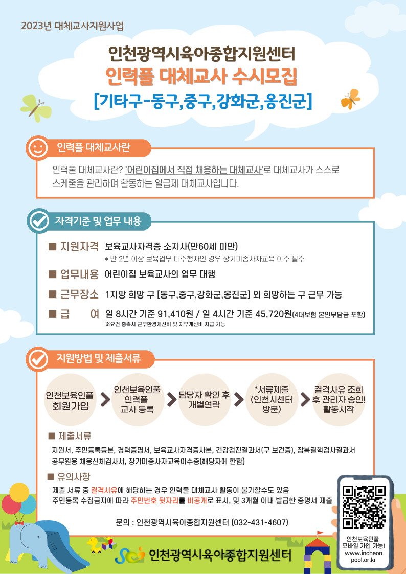 [인천시센터] 어린이집 직접채용 대체교사(기타구) 수시모집