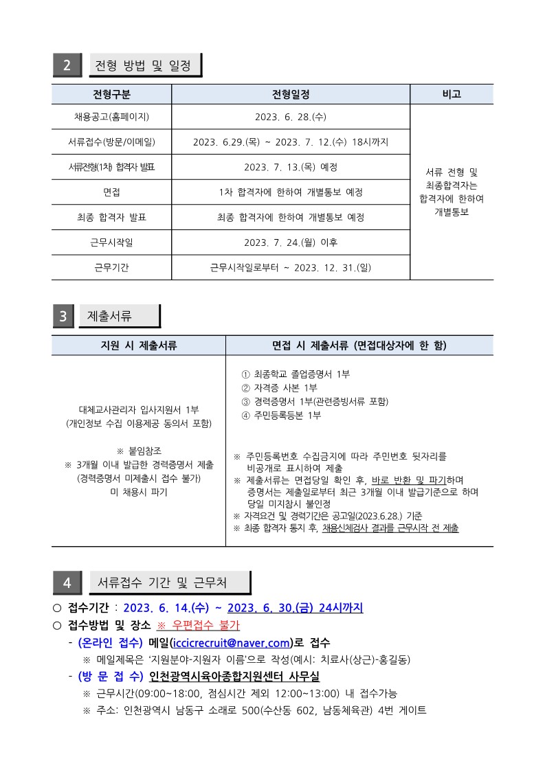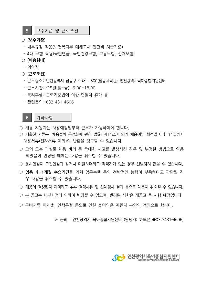 [인천시센터] 대체교사 관리자 채용공고