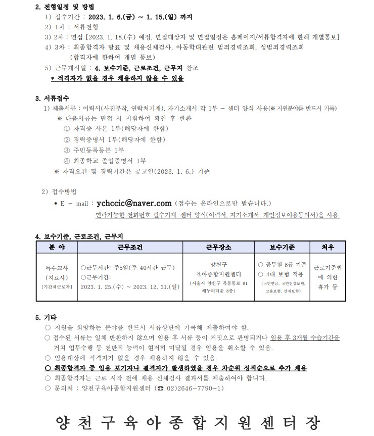[양천구센터] 직원(특수교사) 채용 공고