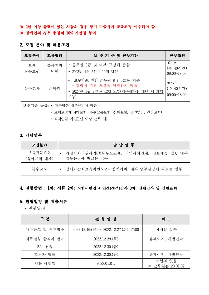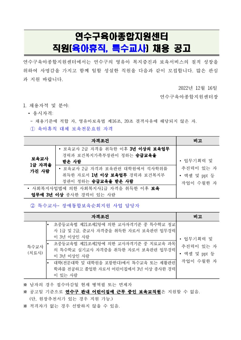 [연수구센터] 직원 채용 공고