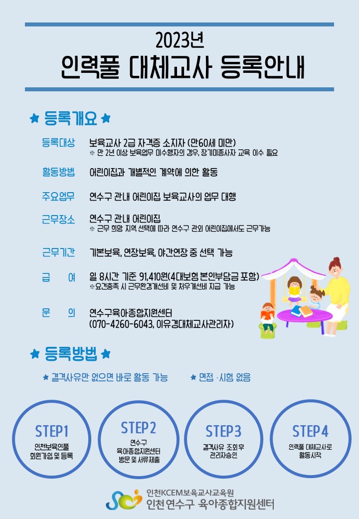 [연수구센터] 인력풀 대체교사 모집 공고