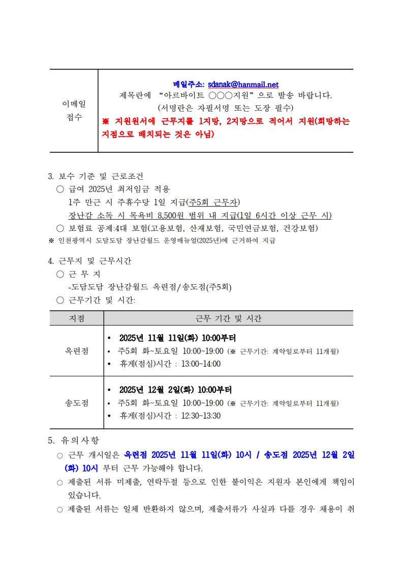 [연수구 도담도담 장난감월드] 기간제(아르바이트) 근로자 채용공고