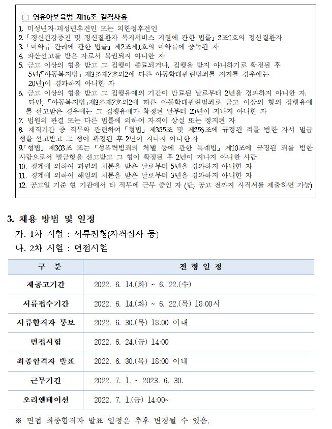 [붙임1] 직원 육아기 근로시간 단축 근무에 따른 대체인력(시간제 보육전문요원) 채용 2차 재공고.hwp