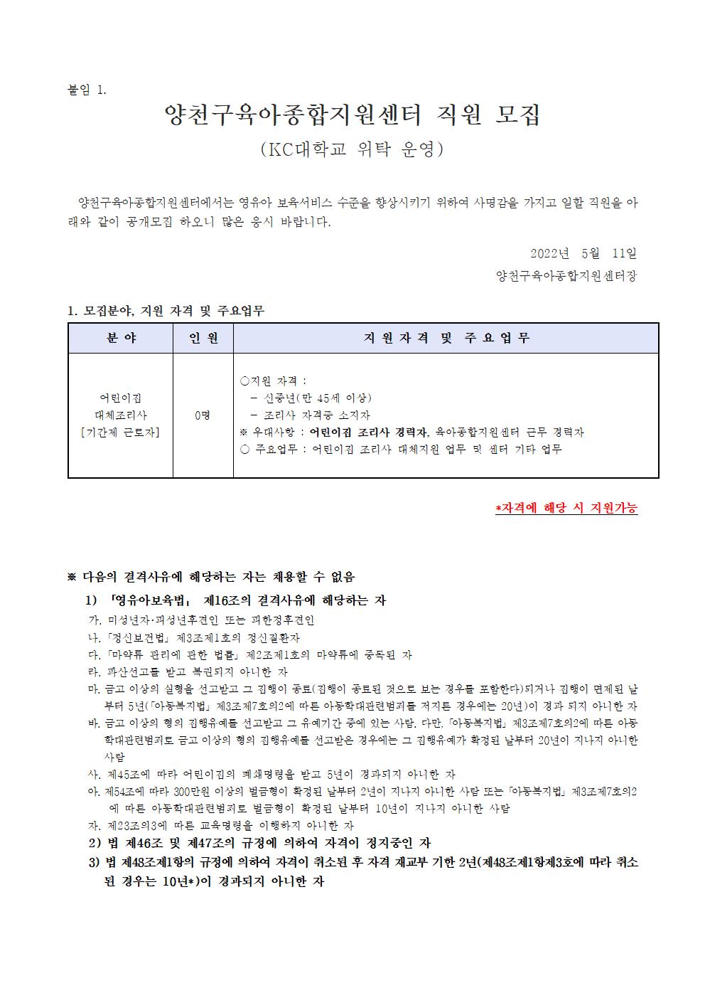 22-317호 붙임1. 채용공고문(어린이집 대체조리사).hwp