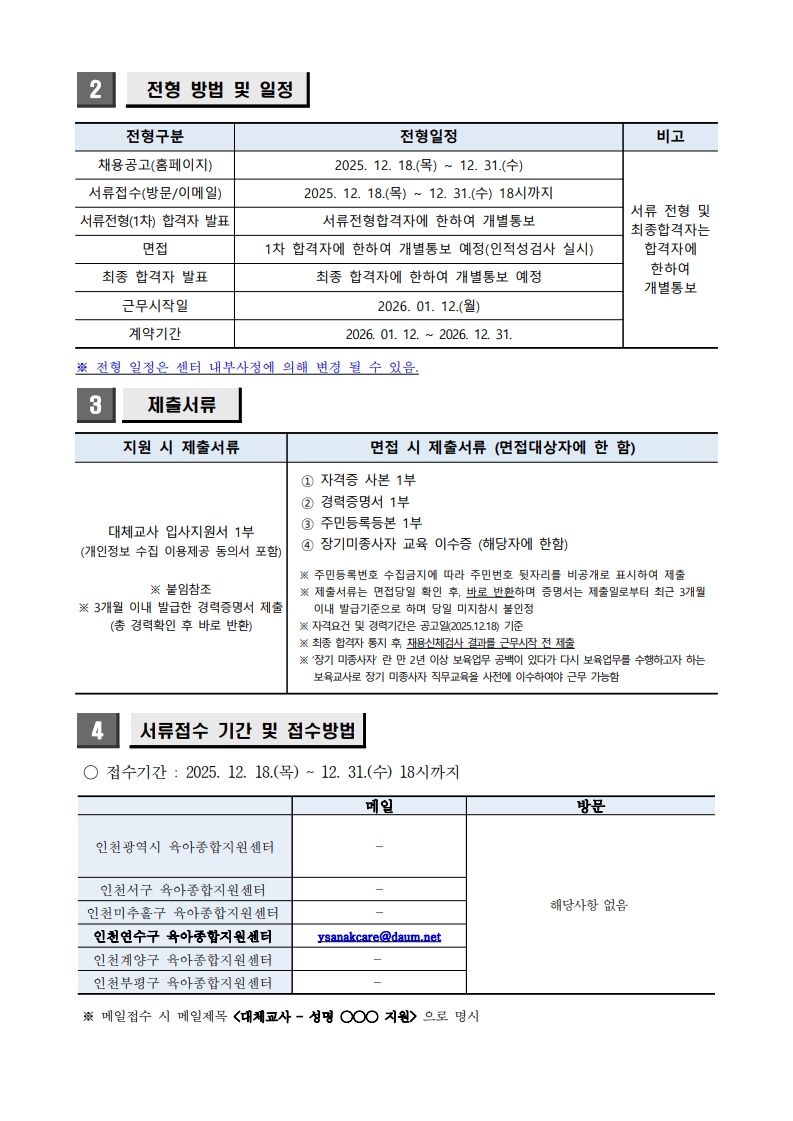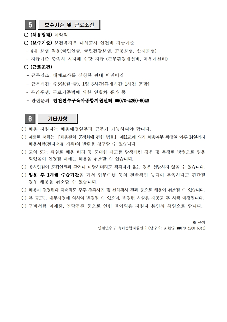 [연수구육아종합지원센터] 2026년 연수구육아종합지원센터 대체교사 지원사업 대체교사 채용 공고