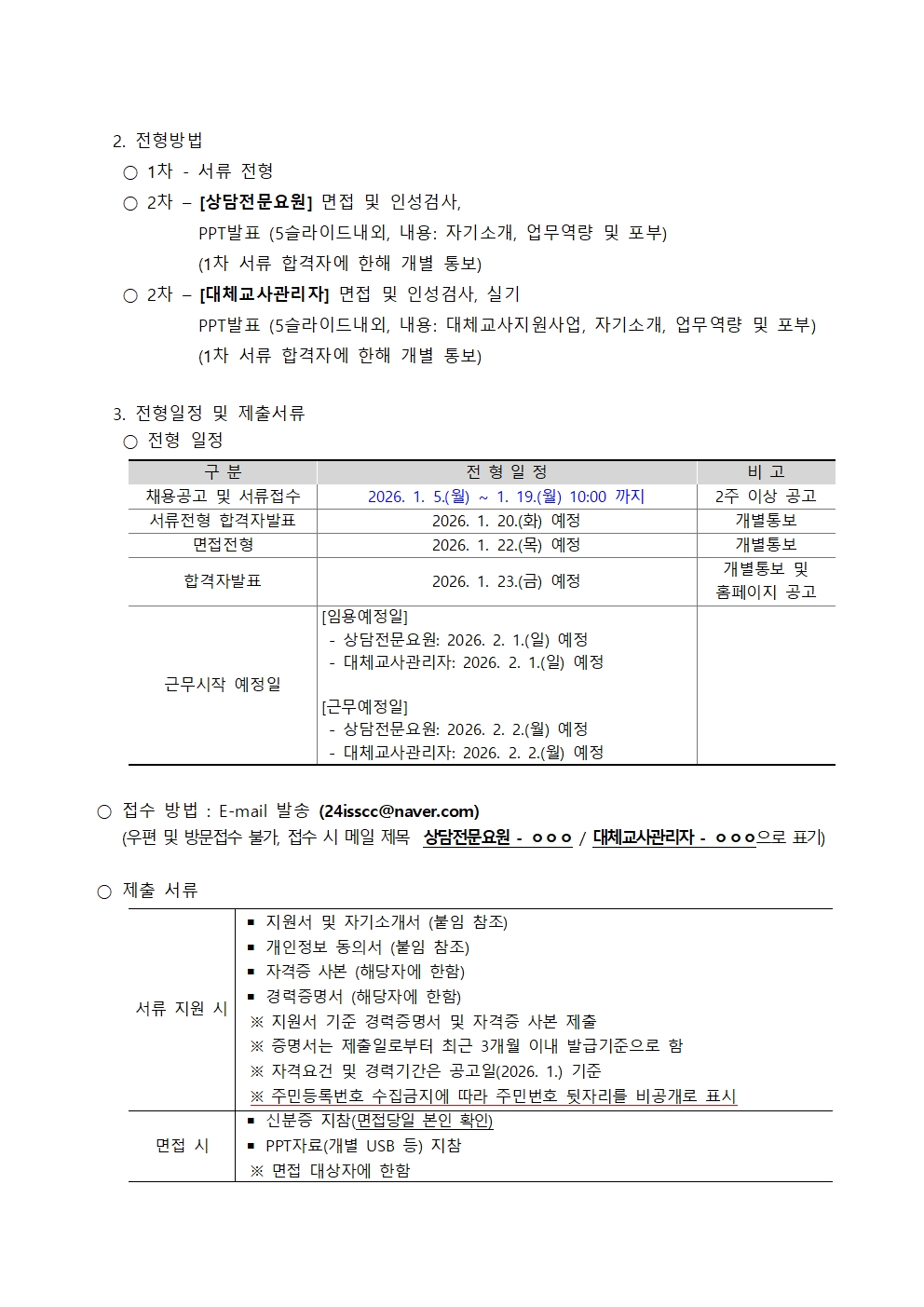 [인천서구육아종합지원센터] 직원(대체교사관리자, 상담전문요원) 채용 공고
