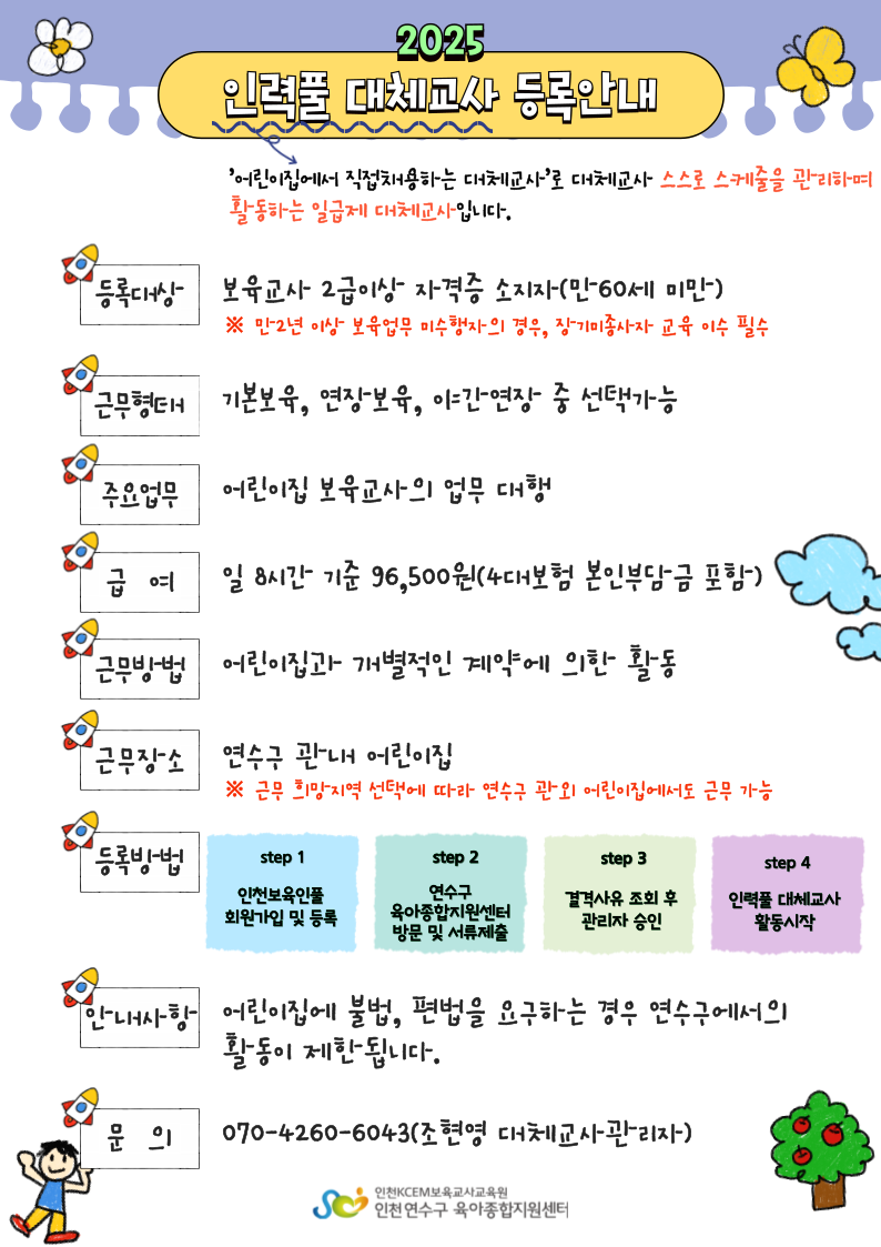 [연수구육아종합지원센터] 6월 인력풀 대체교사 등록 안내