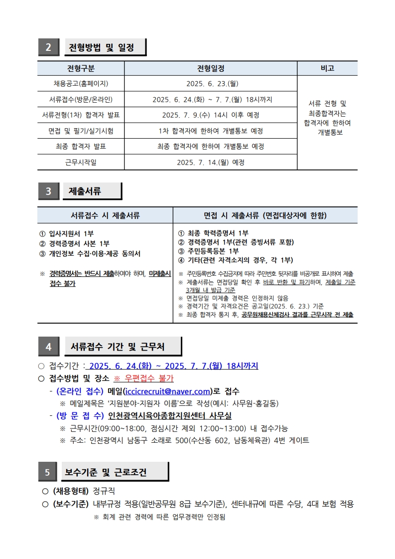 [인천광역시육아종합지원센터] 직원(사무원) 채용 공고