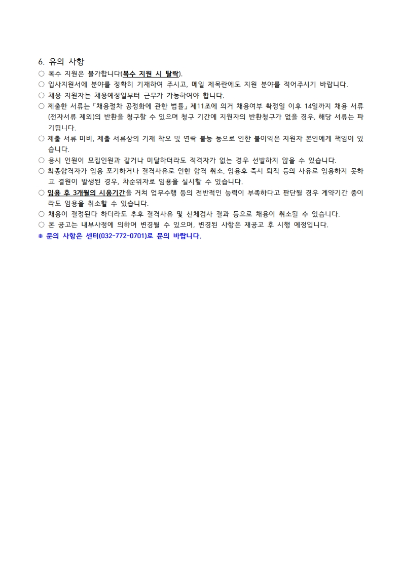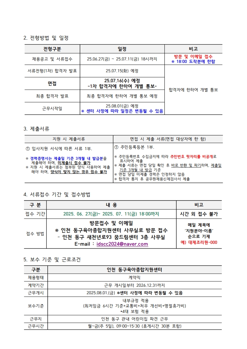 [인천 동구육아종합지원센터] 직원 채용(대체조리원)공고