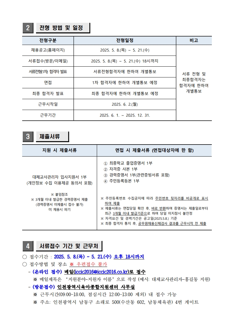 [인천광역시육아종합지원센터] 인천광역시육아종합지원센터 대체교사관리자 채용 공고
