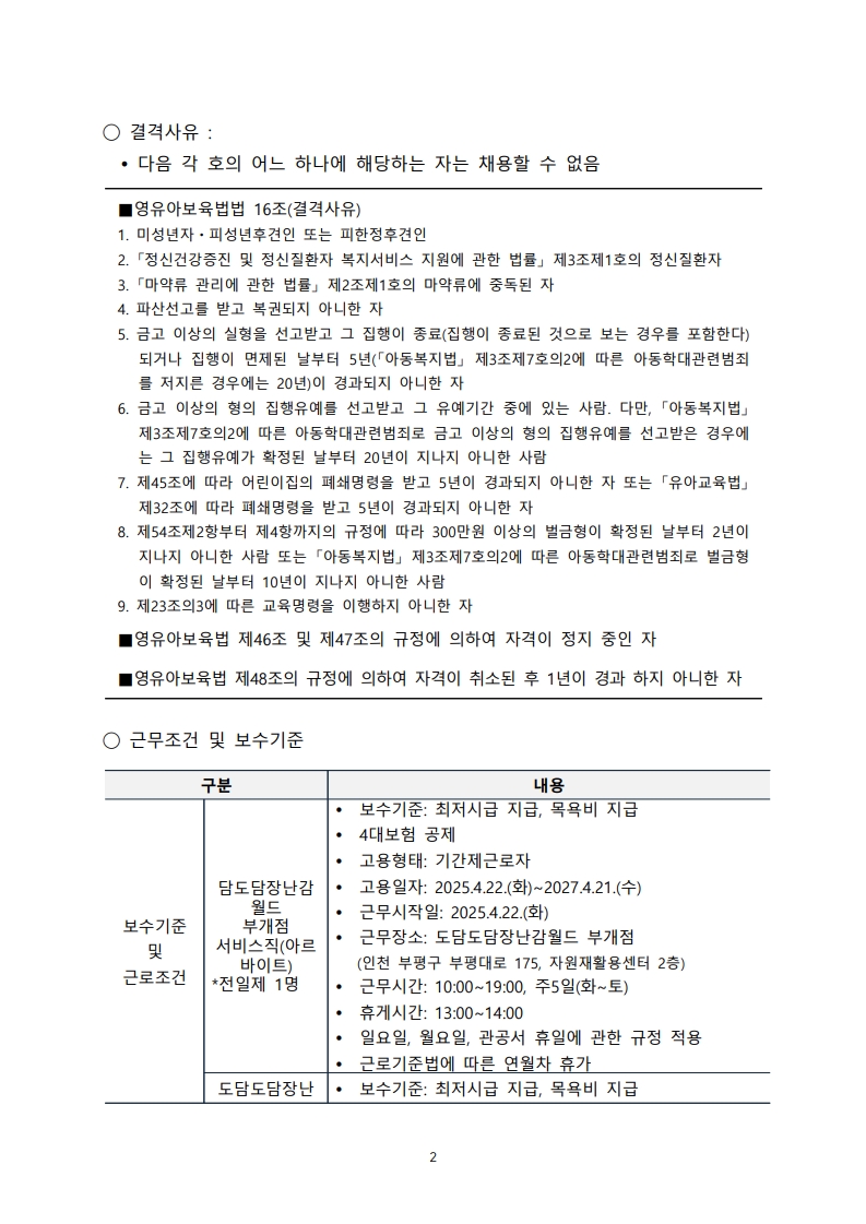 [부평구육아종합지원센터] 2025년 제3회 부평구육아종합지원센터 채용 공고