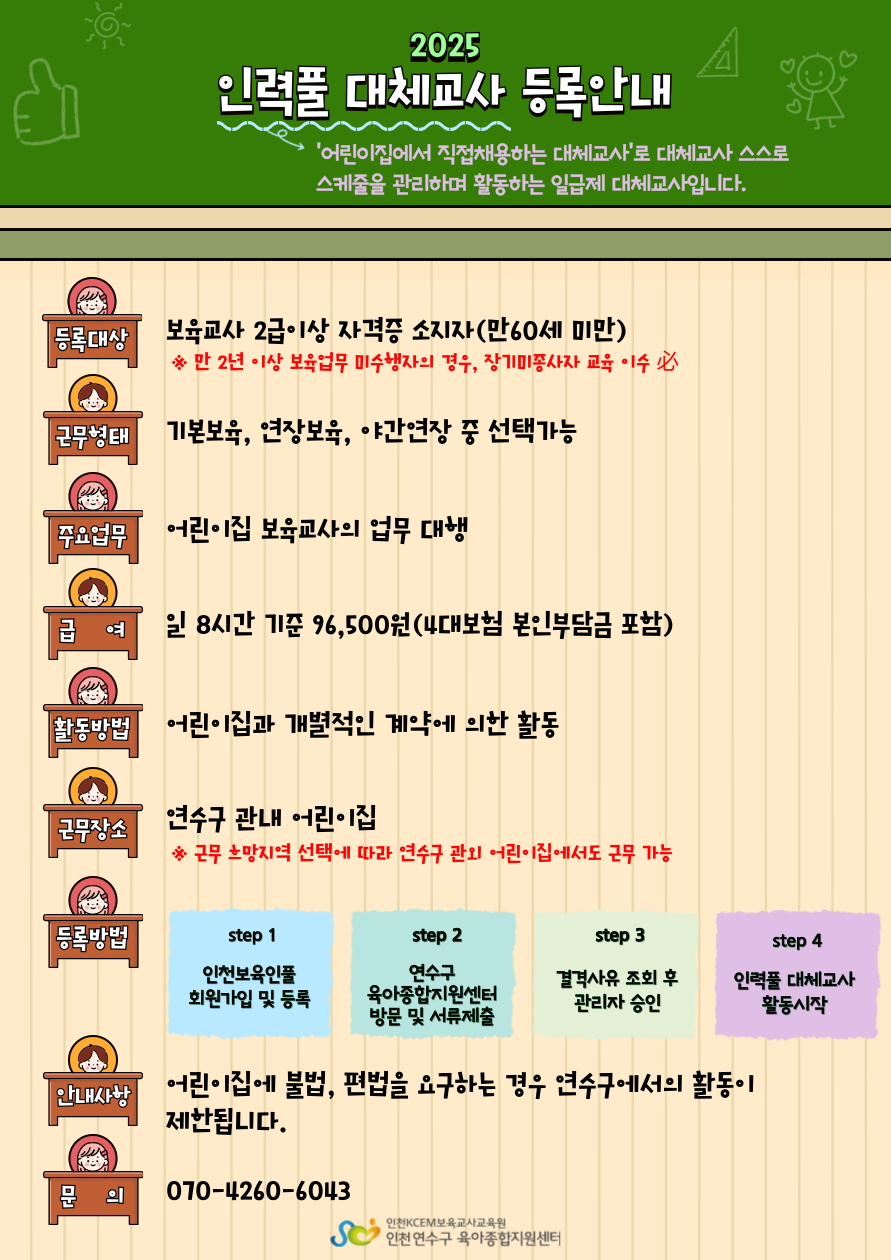 [연수구육아종합지원센터] 3월 인력풀 대체교사