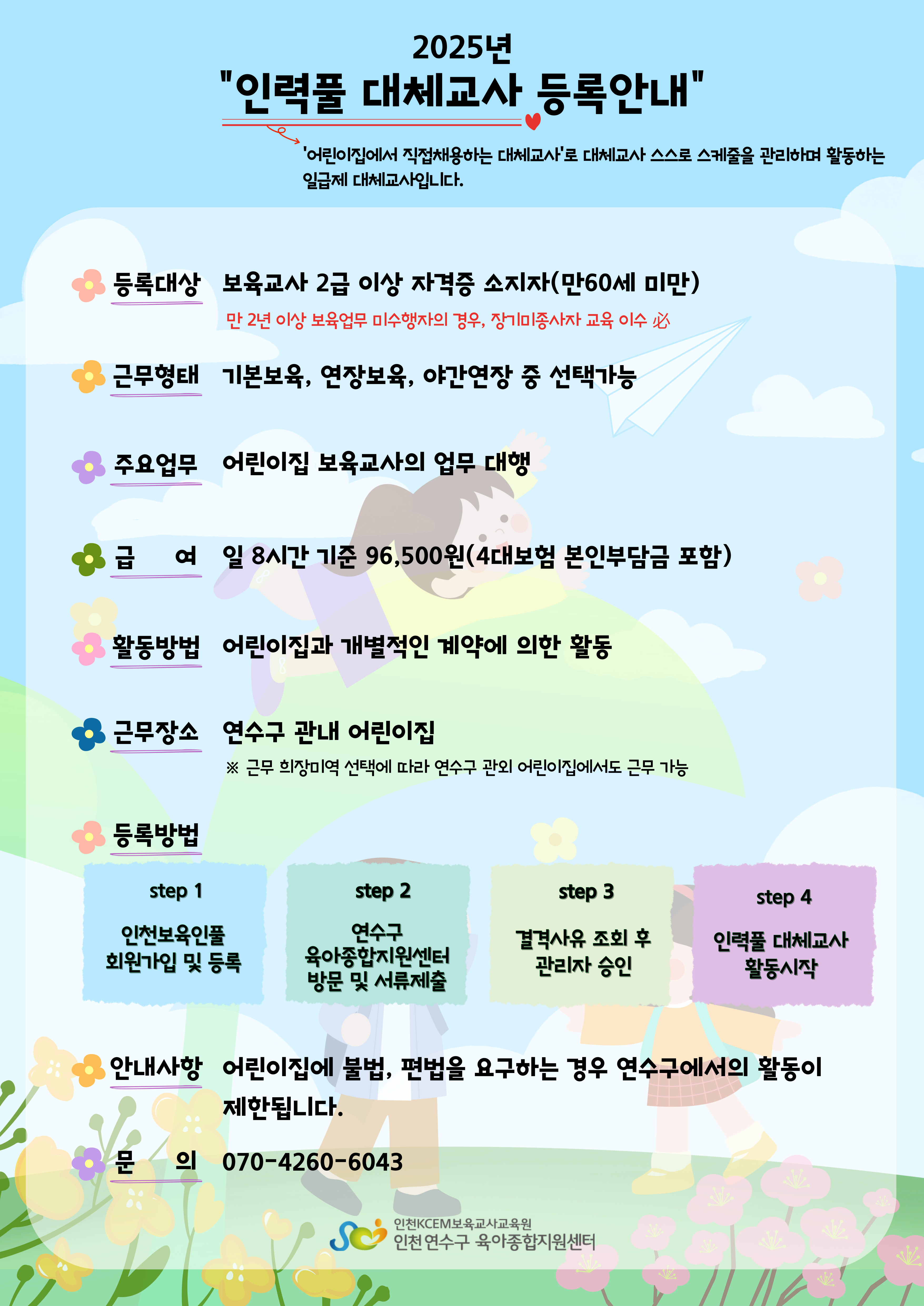 [연수구육아종합지원센터] 3월 인력풀 대체교사 등록 안내