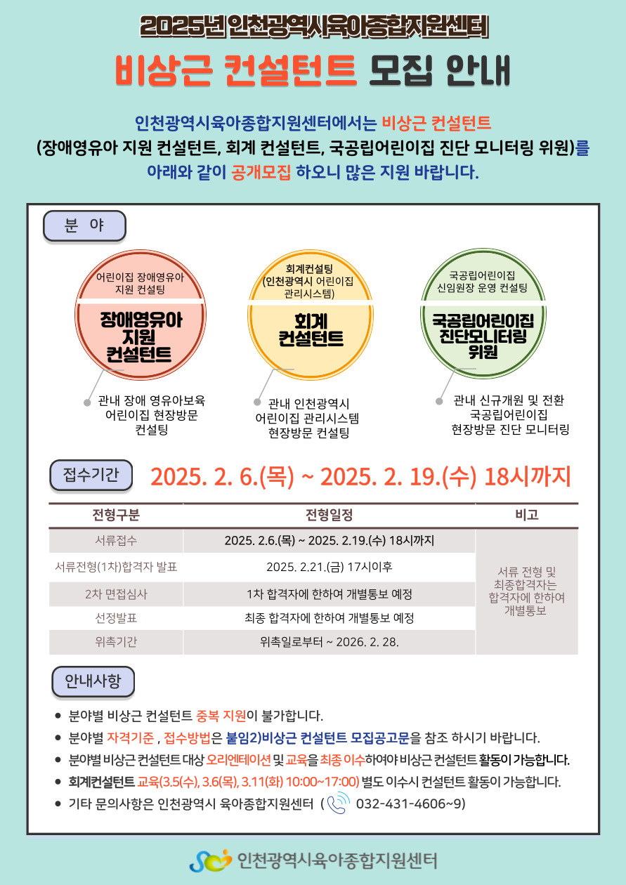 [인천광역시육아종합지원센터] 2025년 비상근 컨설턴트 모집 공고 홍보