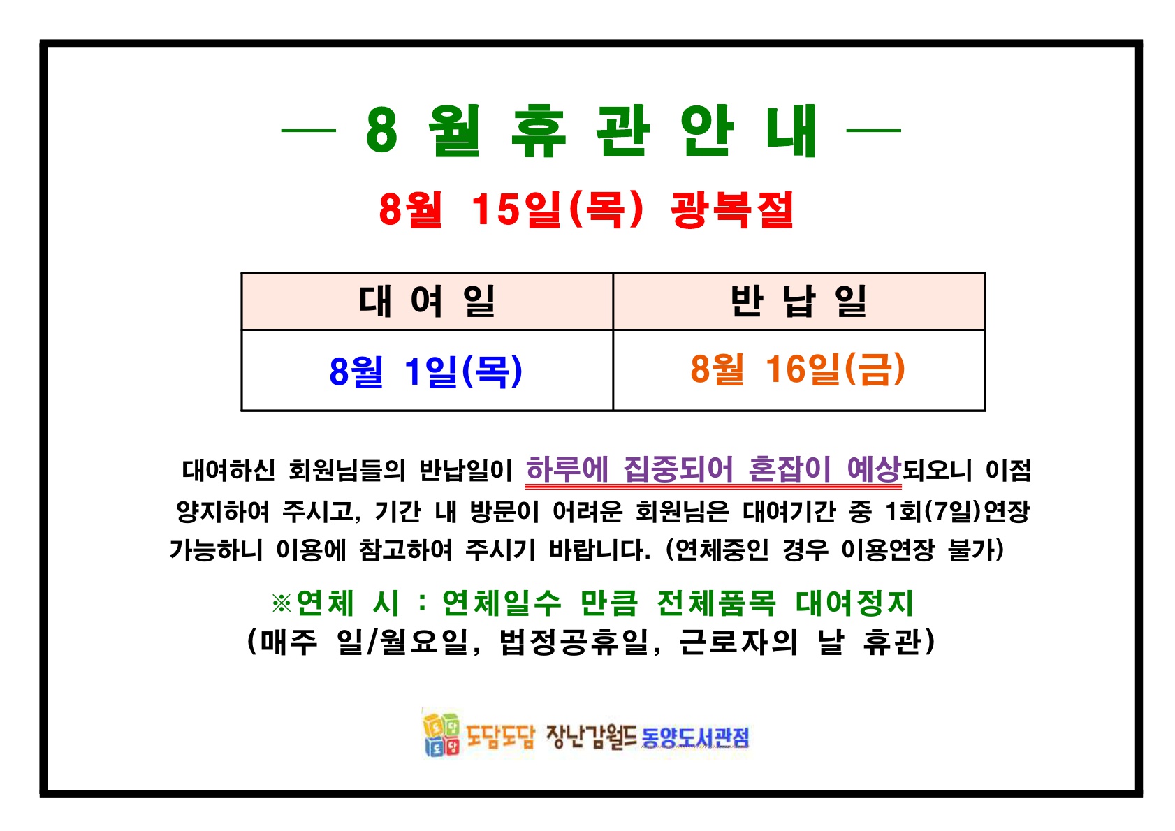 2024년 8월 휴관안내(광복절)