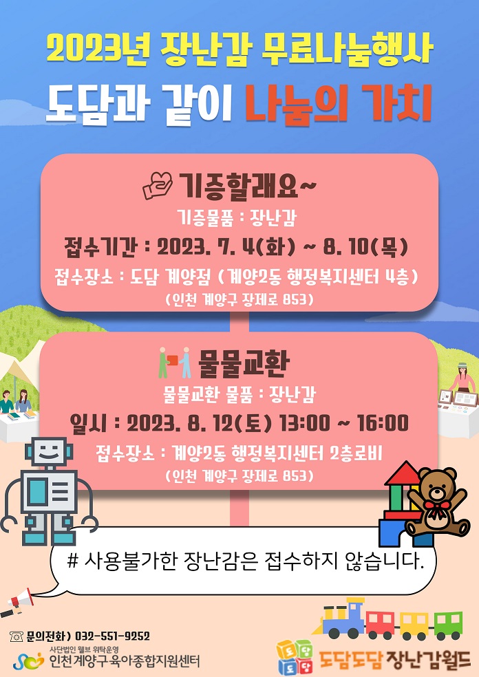 2023년 장난감 무료 나눔행사 일정변경 안내