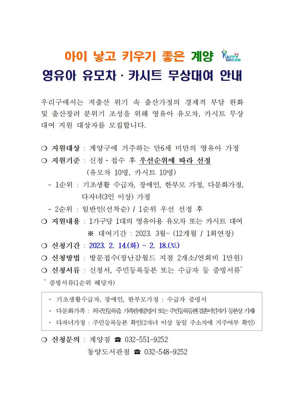 2023년 - 영유아 유모차 · 카시트 무상대여 지원 대상자를 모집합니다.