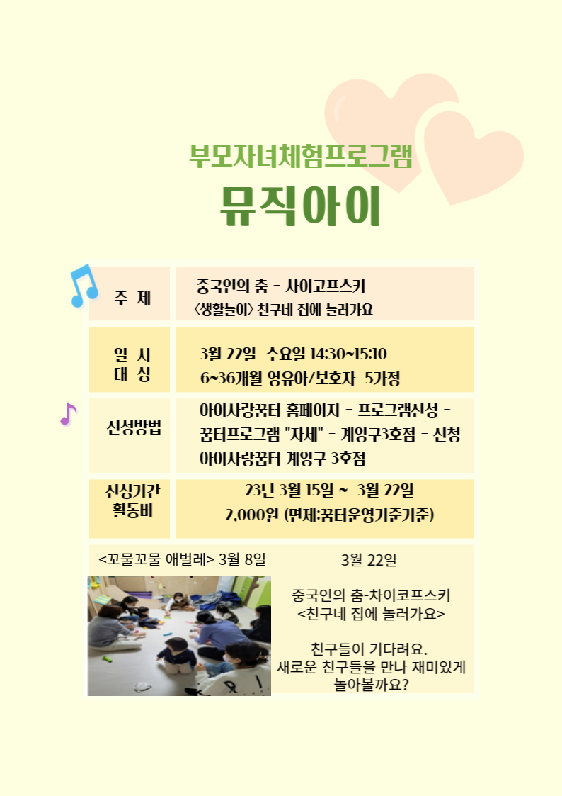 뮤직아이 프로그램 3월 22일 신청안내