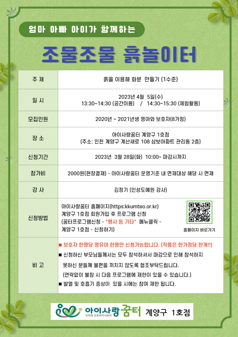 [1호점]조물조물 흙놀이터 - 화분 만들기(1수준)