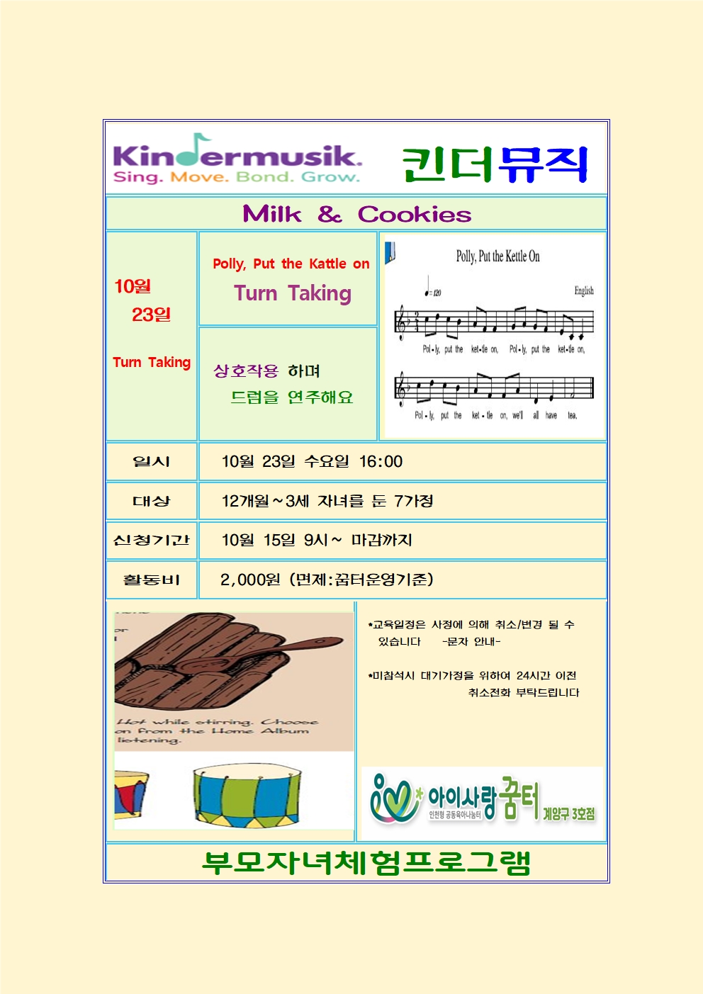 [계양구 3호점]킨더뮤직- Polly, Put the Kattle on Turn Taking