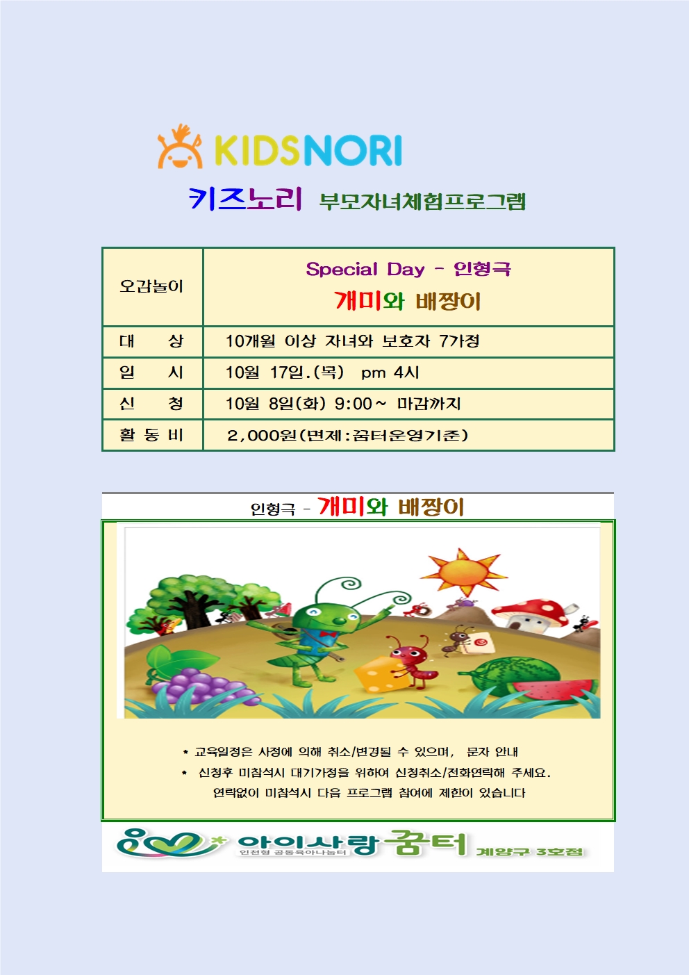[계양구 3호점] 키즈노리/ Special Day - 인형극 개미와 배짱이
