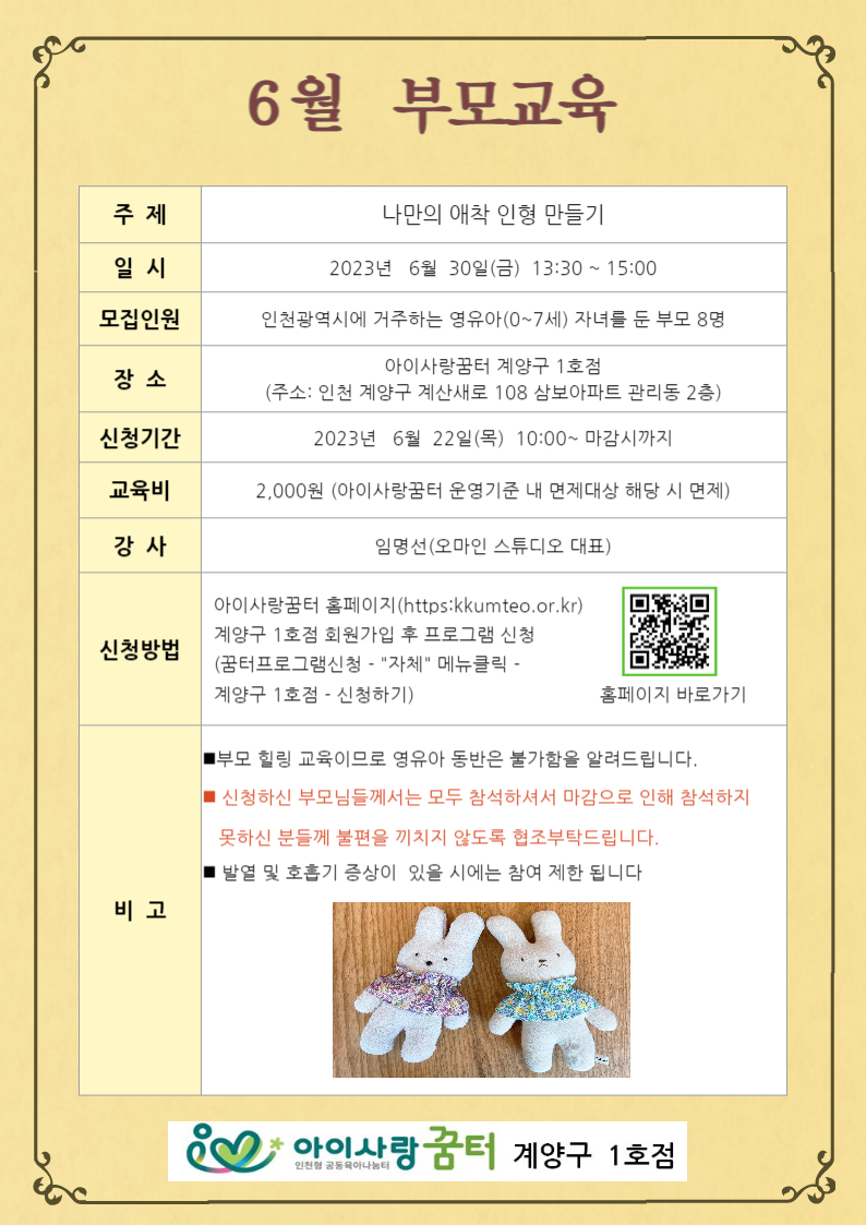 [1호점]6월 부모교육 - 나만의 애착인형 만들기