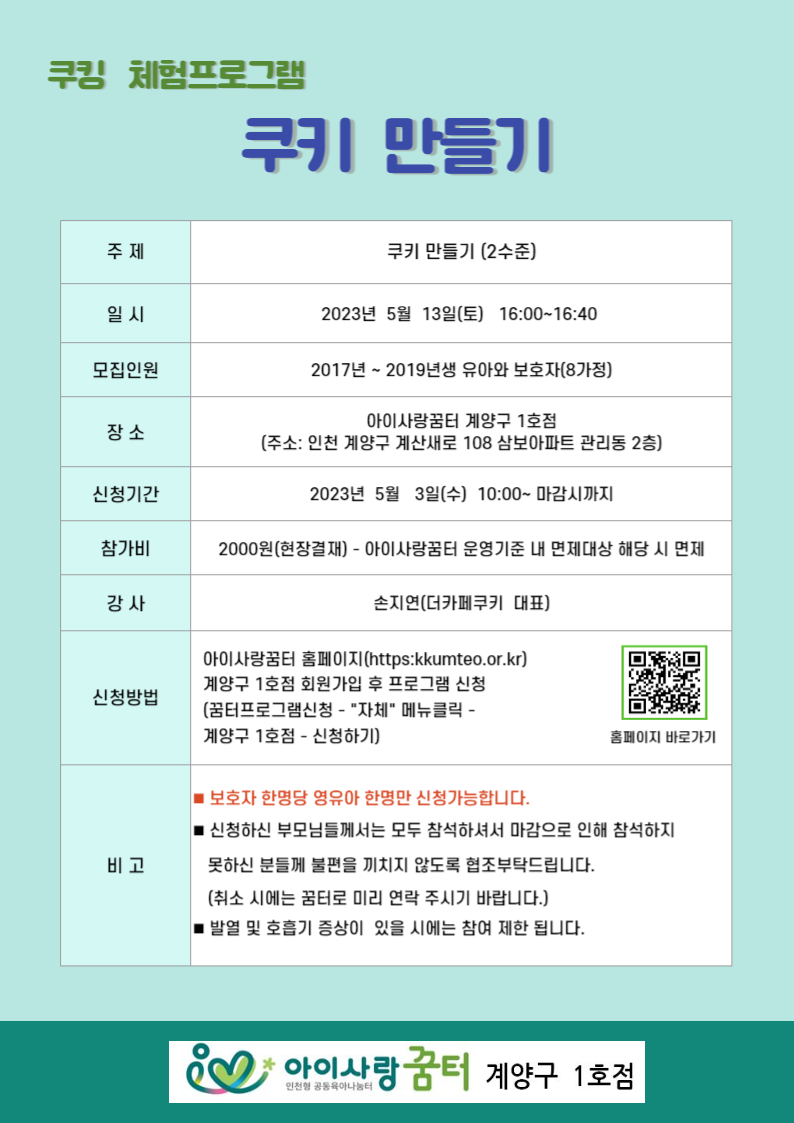 [1호점]쿠킹 체험 - 쿠키 만들기(2수준)